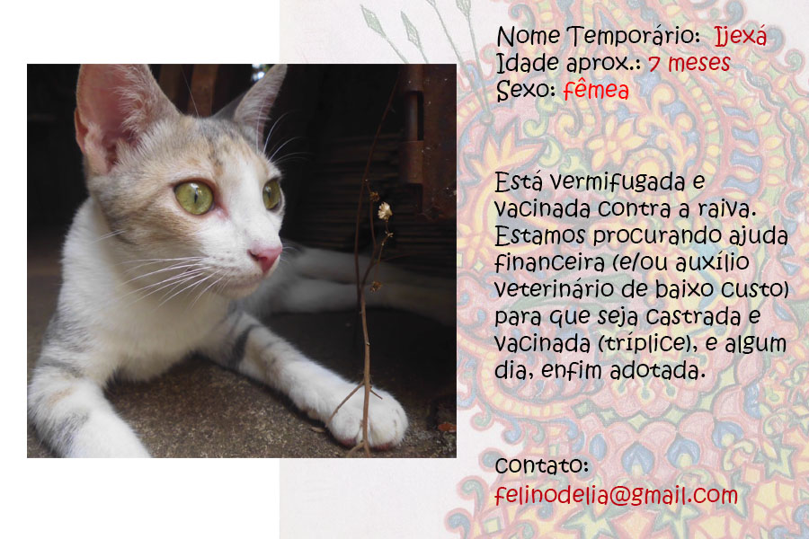 Para conhecer a história dessa gatinha graciosa acesse o álbum no facebook: https://www.facebook.com/media/set/?set=a.196317403891487.1073741832.160996120756949&type=1&l=bb29bef0bd Compartilhe isso: Clique para compartilhar no WhatsApp(abre em nova janela) WhatsApp Clique para compartilhar no Telegram(abre em nova janela) Telegram Clique para compartilhar no Reddit(abre em nova janela) Reddit Clique para compartilhar no X(abre em nova janela) 18+ Clique para enviar um link por e-mail para um amigo(abre em nova janela) E-mail Clique para compartilhar no Facebook(abre em nova janela) Facebook Curtir Carregando... Relacionado Publicado por felinodelia Ver todos os posts de felinodelia