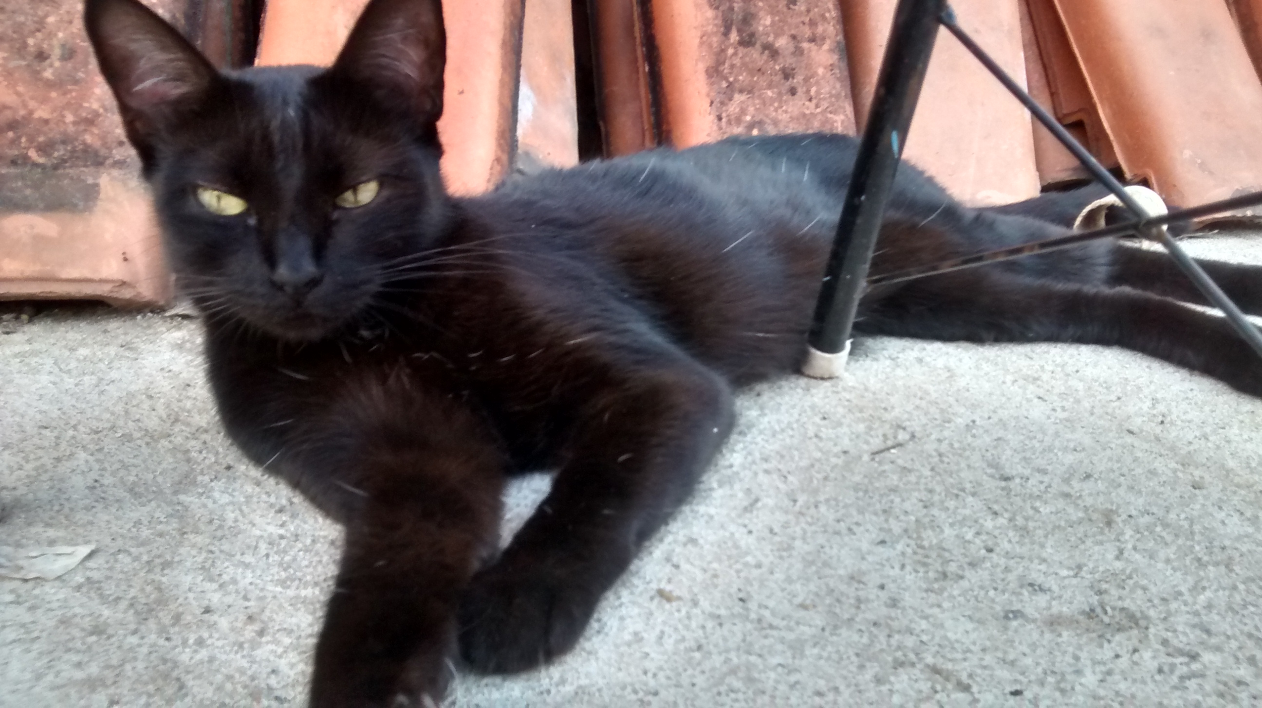 Petrolina é uma gatinha toda preta, com alguns pelinhos brancos ali outros aki…