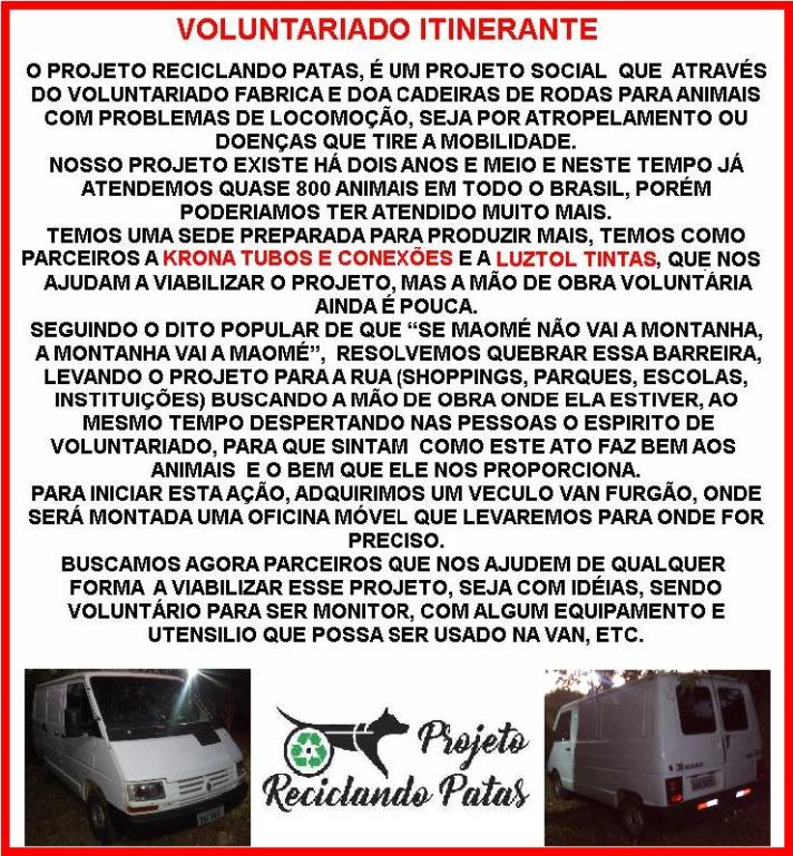 Ele conta que tem fila de espera e poucos voluntários que queiram ajudar no feitio delas. Em breve, o Reciclando Patas terá uma unidade móvel que visitará vários bairros de Goiânia.