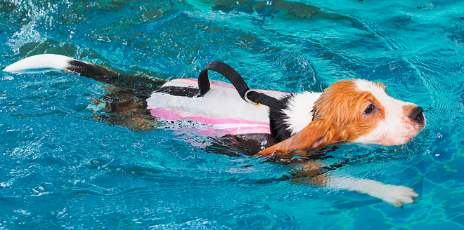 Portanto, assim como as pessoas, o pet pode contar com um auxiliar de flutuação desenvolvido especialmente para eles, o colete salva vidas, que mantém o animal boiando, estável na água e, por isso, permite que ele nade por muito mais tempo.