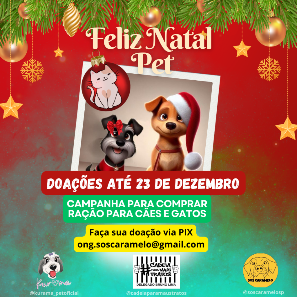 A emocionante campanha Feliz Natal Pet, uma iniciativa inspiradora idealizada pela pet influencer ativista, Kurama tem o apoio de defensores da Causa Animal, a campanha visa realizar a maior arrecadação de ração para cães e gatos em situação de vulnerabilidade.