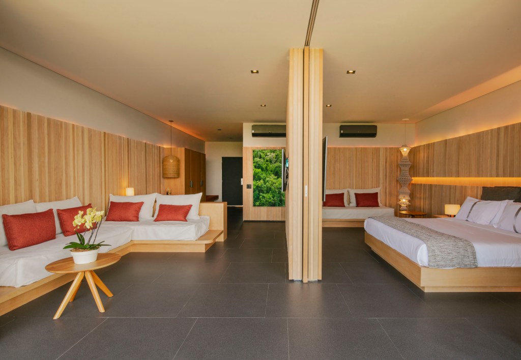 Os hóspedes que chegam acompanhados dos seus pets recebem um mapa com o direcionamento das áreas sociais que eles podem aproveitar juntos. Além dos ambientes compartilhados, os quartos pet friendly oferecem o mesmo conforto e design dos resorts. As recém-inauguradas acomodações do bloco Vila da Mata, em Ibiúna, são um exemplo, que contam com uma infraestrutura completa e privativa que garante o conforto necessário para a família, com um design moderno, além de um revestimento sofisticado e elegante, cuidadosamente desenvolvido para criar uma atmosfera única. São 4 categorias disponíveis, com destaque para a Master Garden que inclui diferenciais como lareira, sauna, copa e sala de estar com uma ampla mesa para trabalho ou refeições.