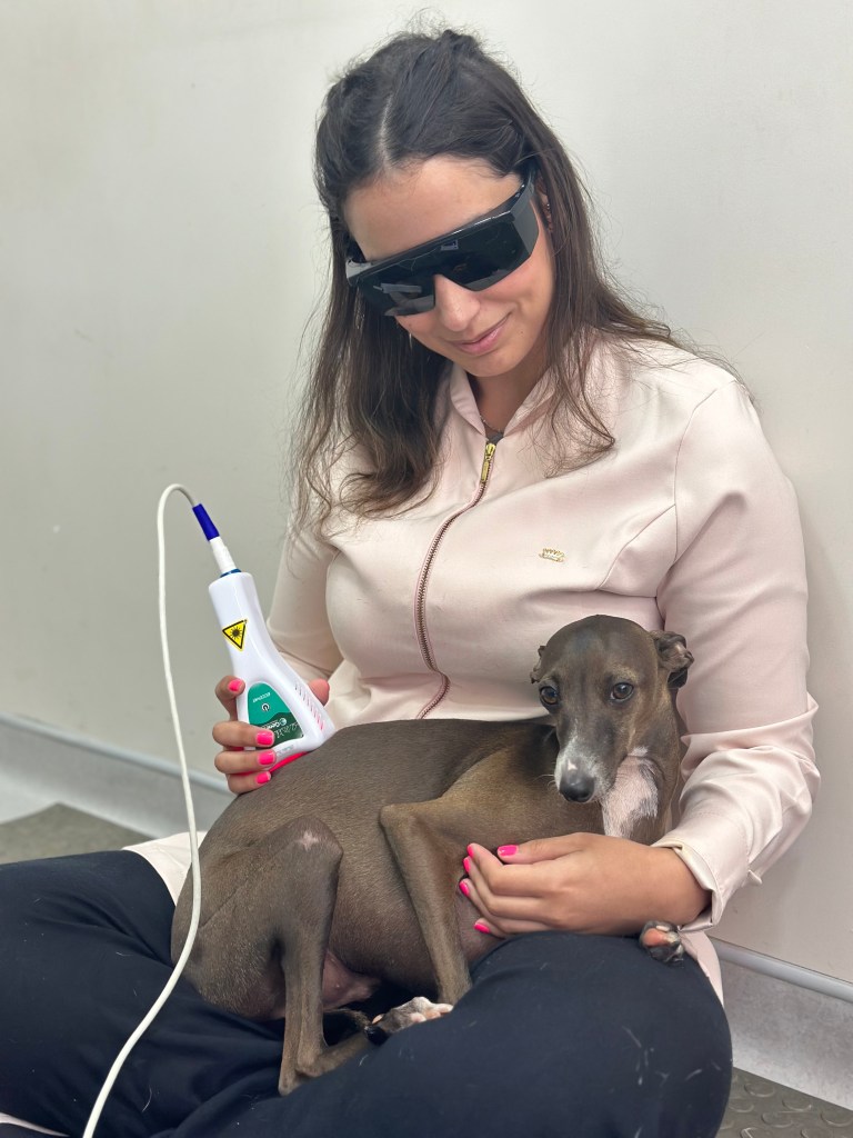 Anna Beatriz Pereira Barros, também fisioterapeuta do Hospital Veterinário Taquaral, atesta que a laserterapia tem mostrado resultados notáveis em animais de estimação, especialmente em casos de hérnia de disco e recuperação pós-cirúrgica. Ela chama a atenção para a mais recente inovação, a Fotobiomodulação transcraniana, que é usada para tratar condições cerebrais em pets idosos e outros casos neurológicos.