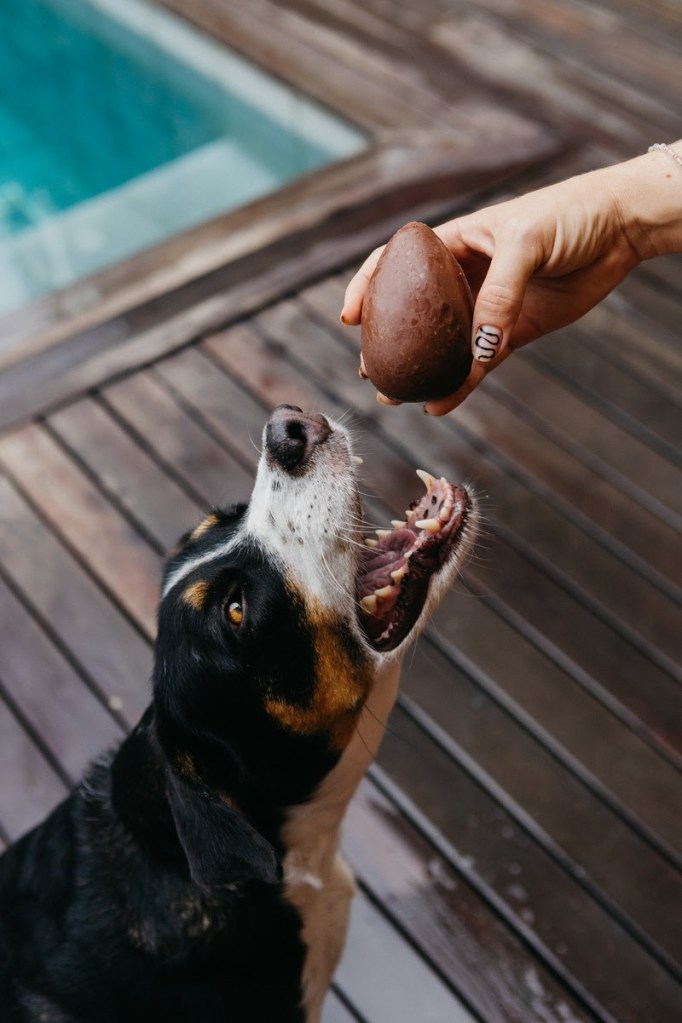 Os pets possuem restrições em relação ao chocolate, mas algumas marcas já desenvolvem Ovo de Páscoa para cachorros, feitos com ingredientes seguros para os cães e tem a mesma consistência, cheiro e sabor do doce convencional